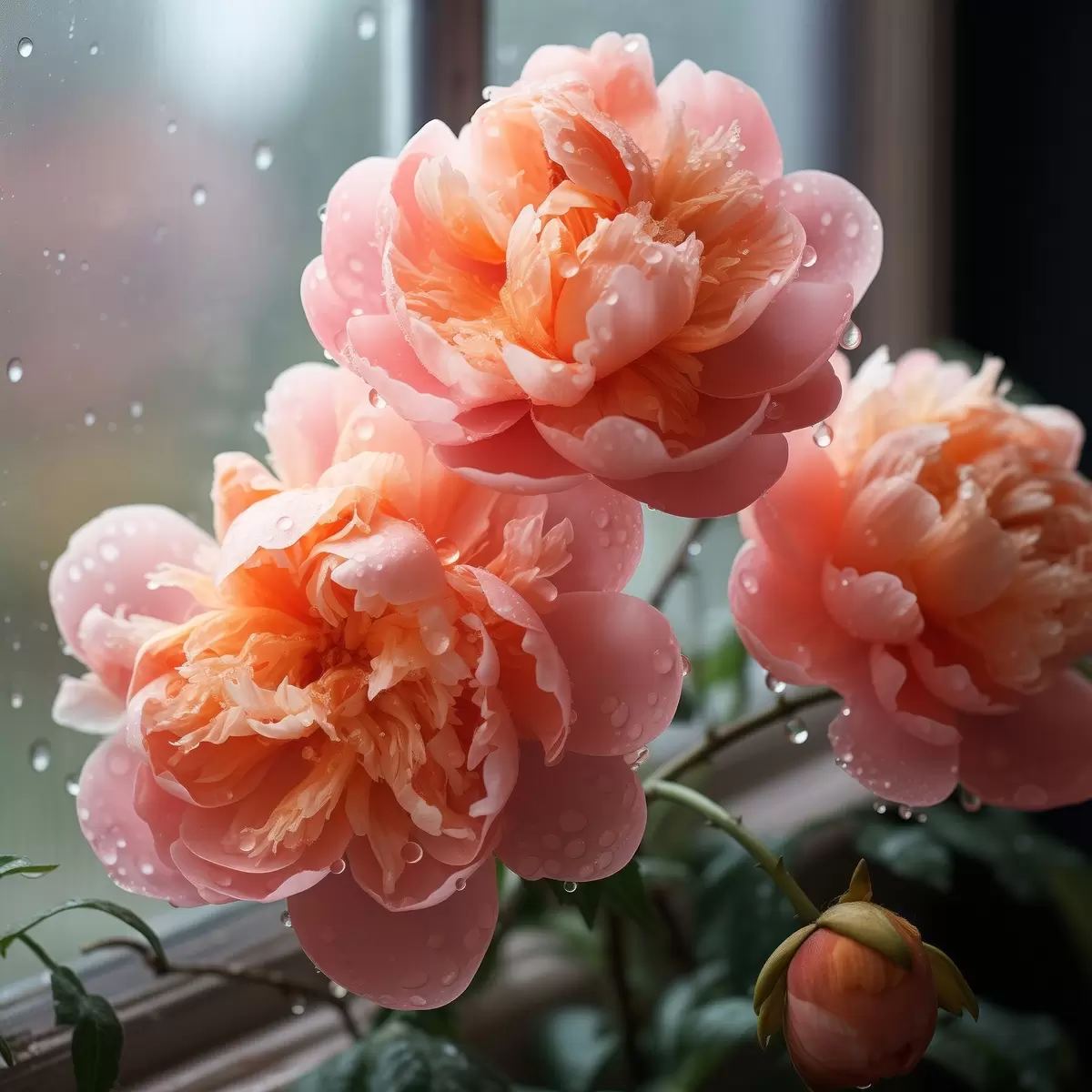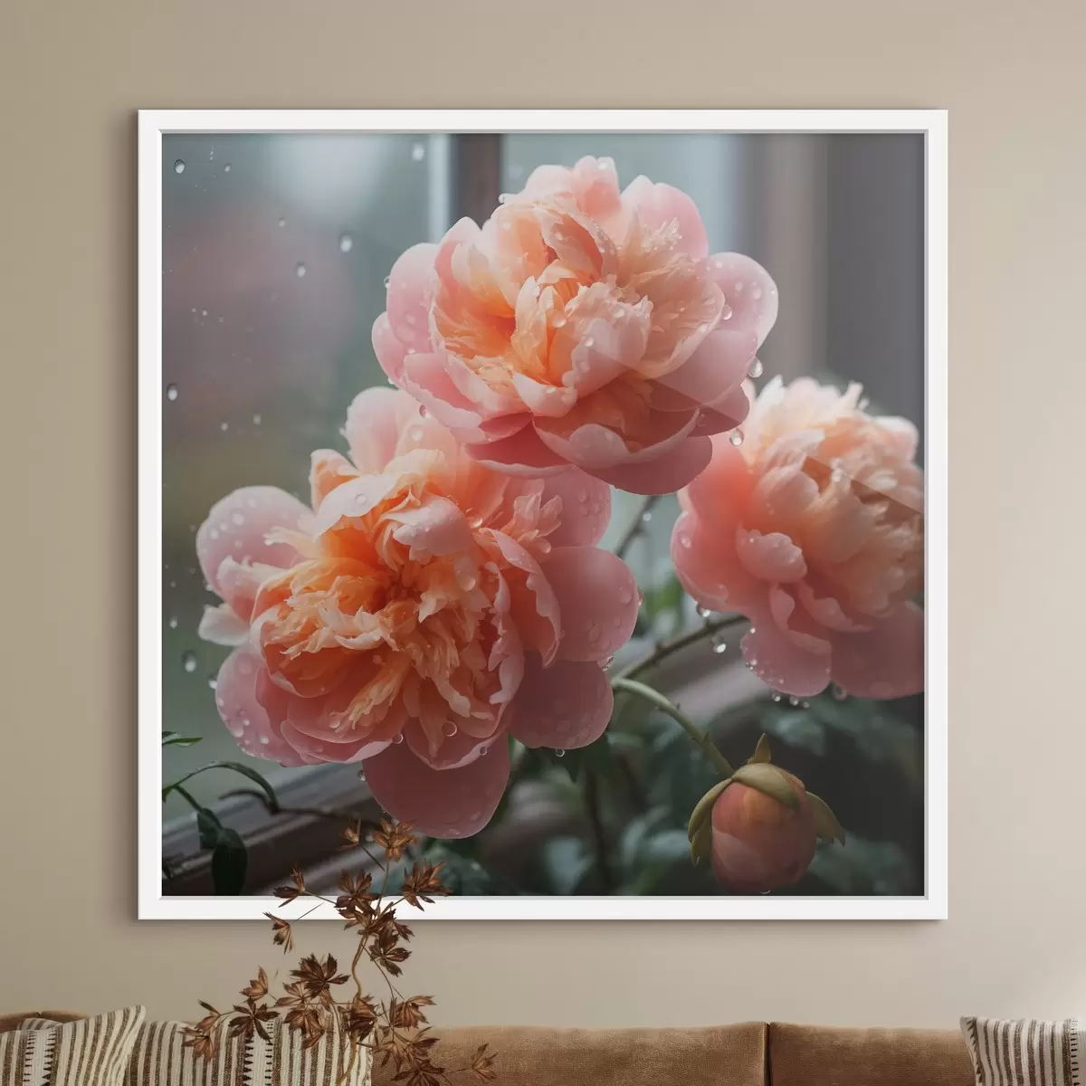 Poster Kolm pioonid kaste hommikuvalguses Nr f45033