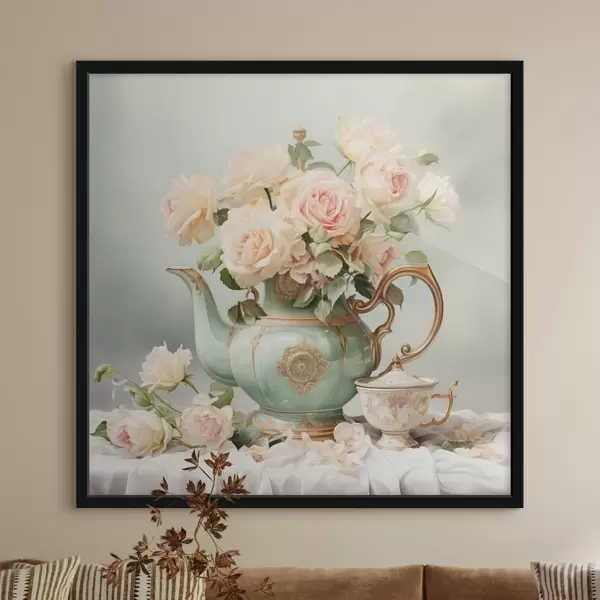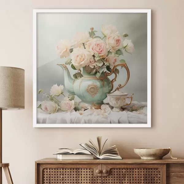 Poster Natüürmort õrnade roosidega teekomplektis Nr f45045