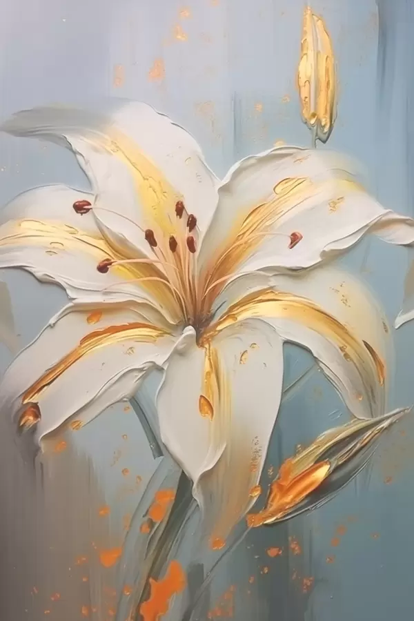 Plakat Valge liilia kollaste piirjoontega sinisel taustal f45077
