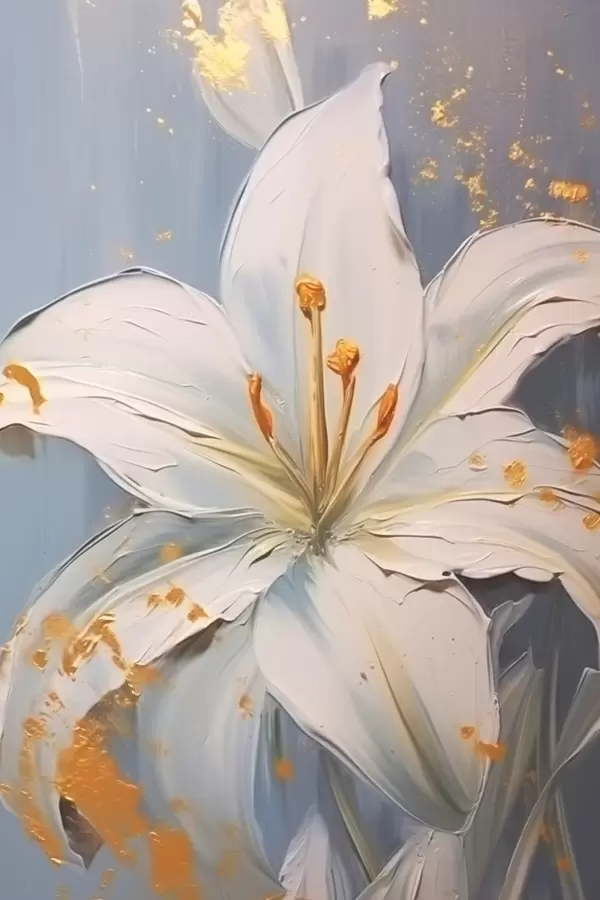 Plakat Valge liilia kollaste aktsentidega sinisel taustal f45078