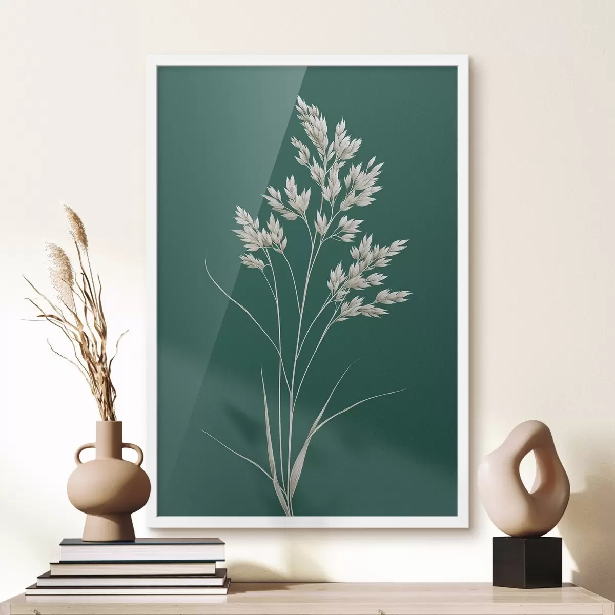 Plakat botaaniline, minimaalne, rohi, vars, roheline taust, looduslik, taim, korter, lame f45091