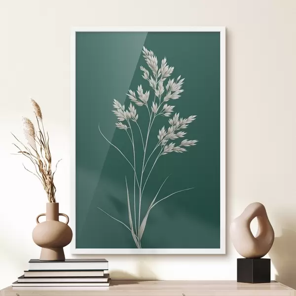 Poster botaaniline, minimaalne, rohi, vars, roheline taust, looduslik, taim, korter, lame Nr f45091