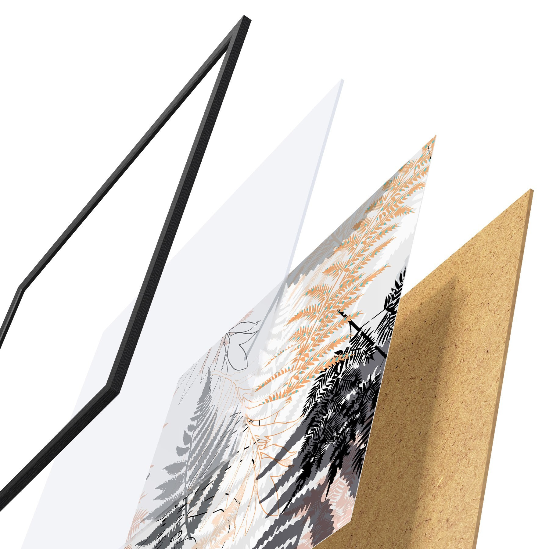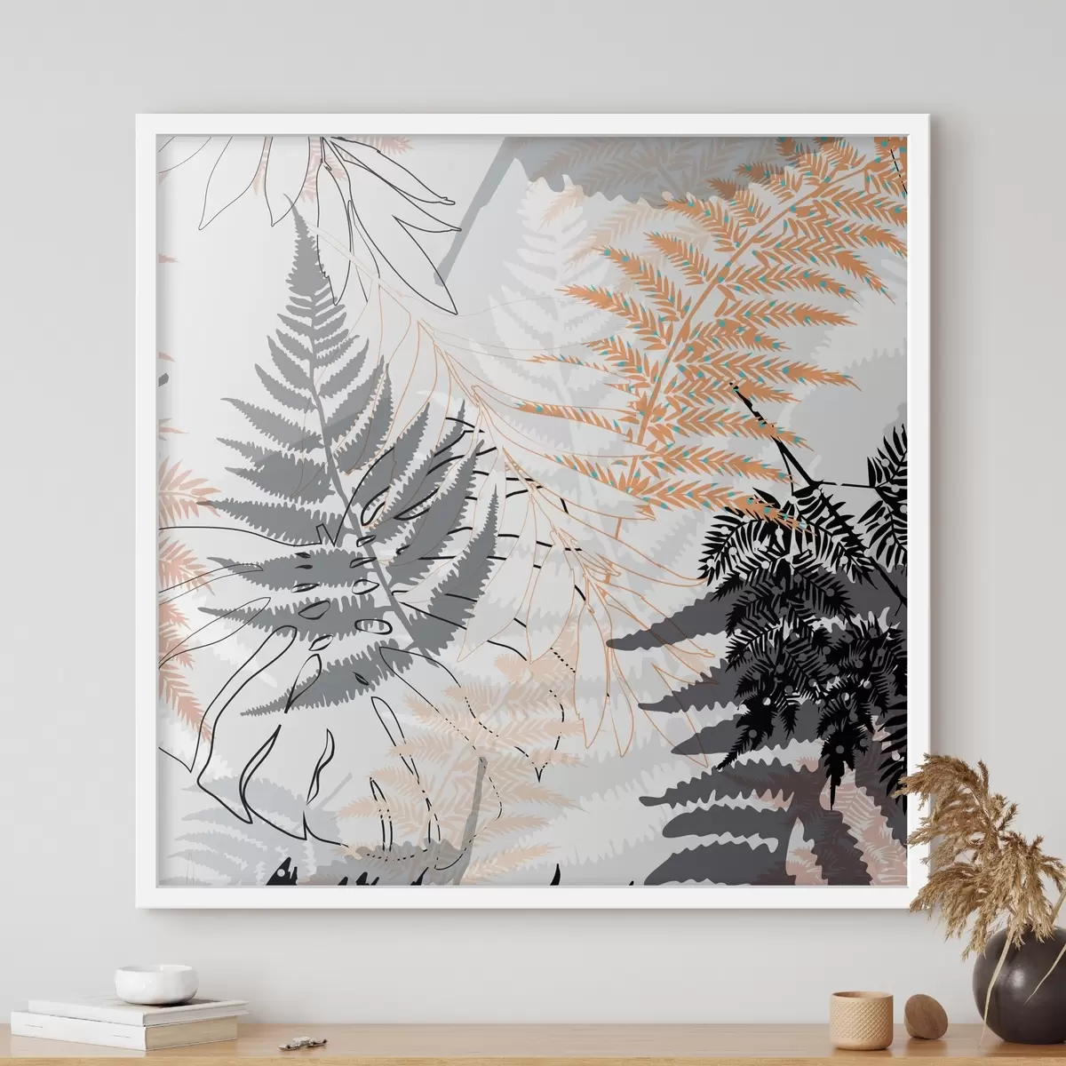 Poster sõnajalg, abstraktsed lehed, muster, lame disain, kontrast, hallid toonid, botaanika, ülekate Nr f45101