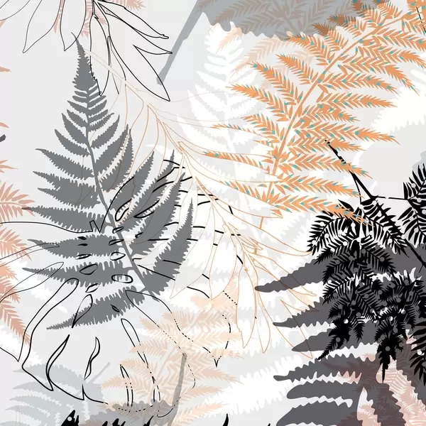 Poster sõnajalg, abstraktsed lehed, muster, lame disain, kontrast, hallid toonid, botaanika, ülekate Nr f45101