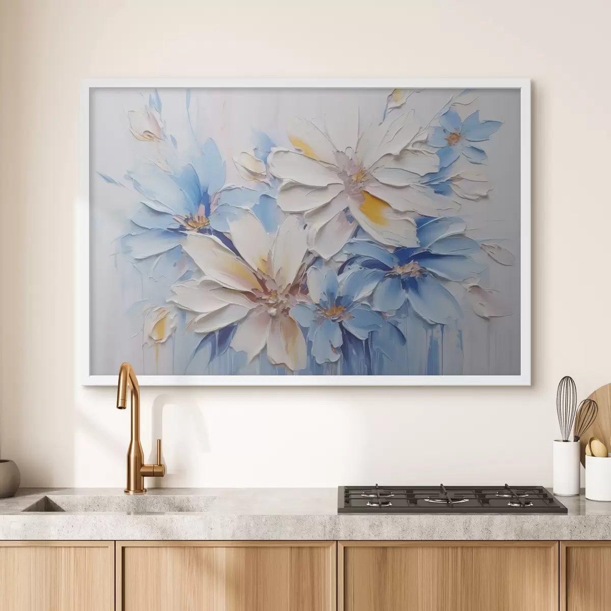 Me müüme pilte kanderaamidel - see on puidust raam, millele lõuend on pingutatud. Seda pilti ei ole vaja raamida, seda võib riputada otse seinale.