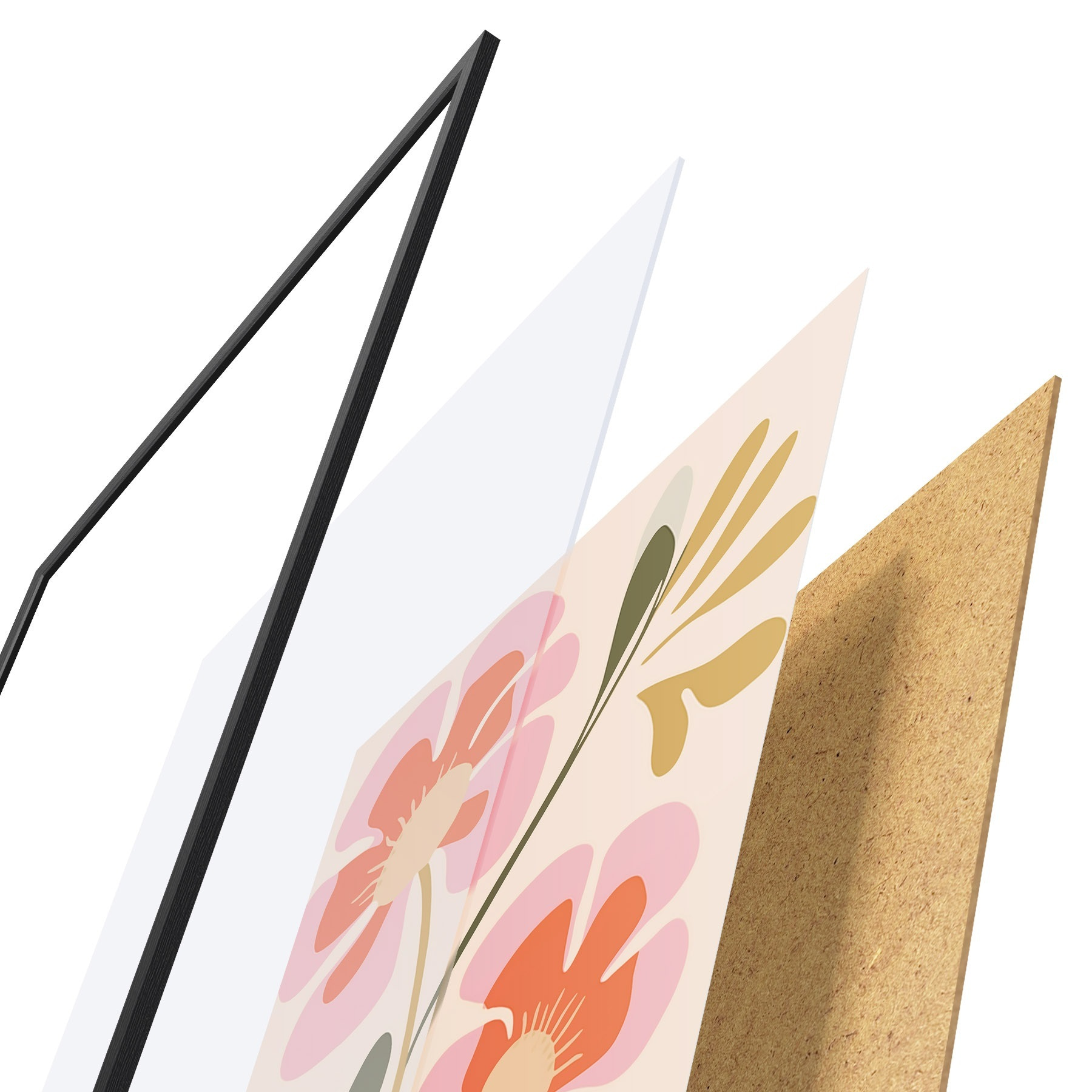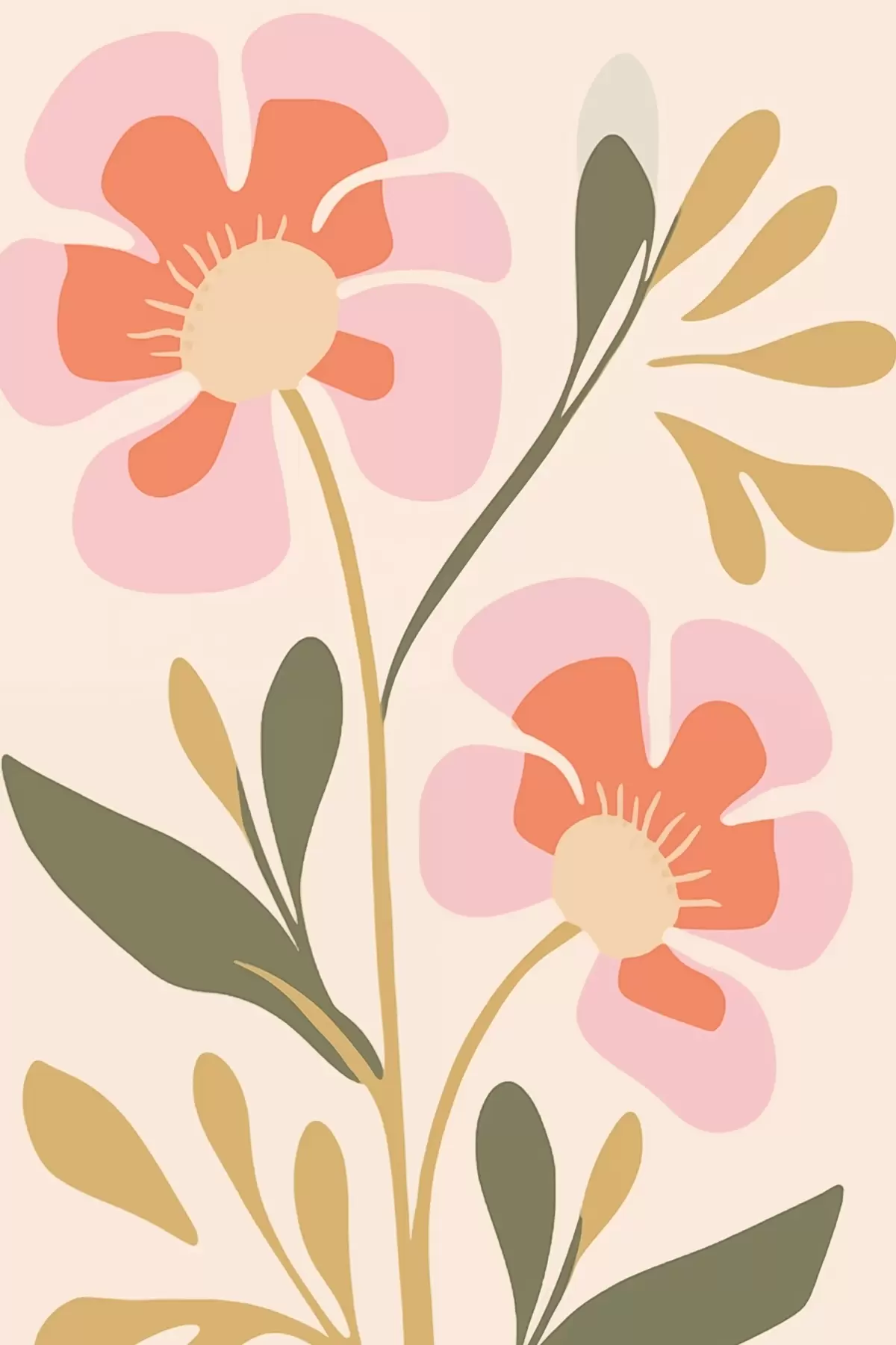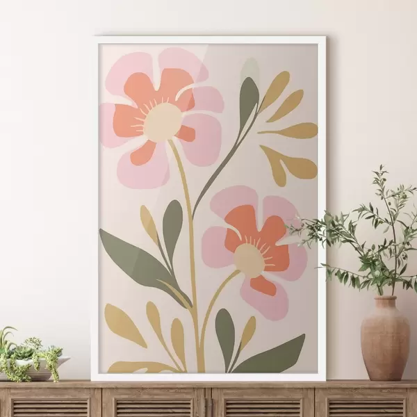 Plakat Stiliseeritud roosad ja oranžid lilled roheliste lehtedega f45140
