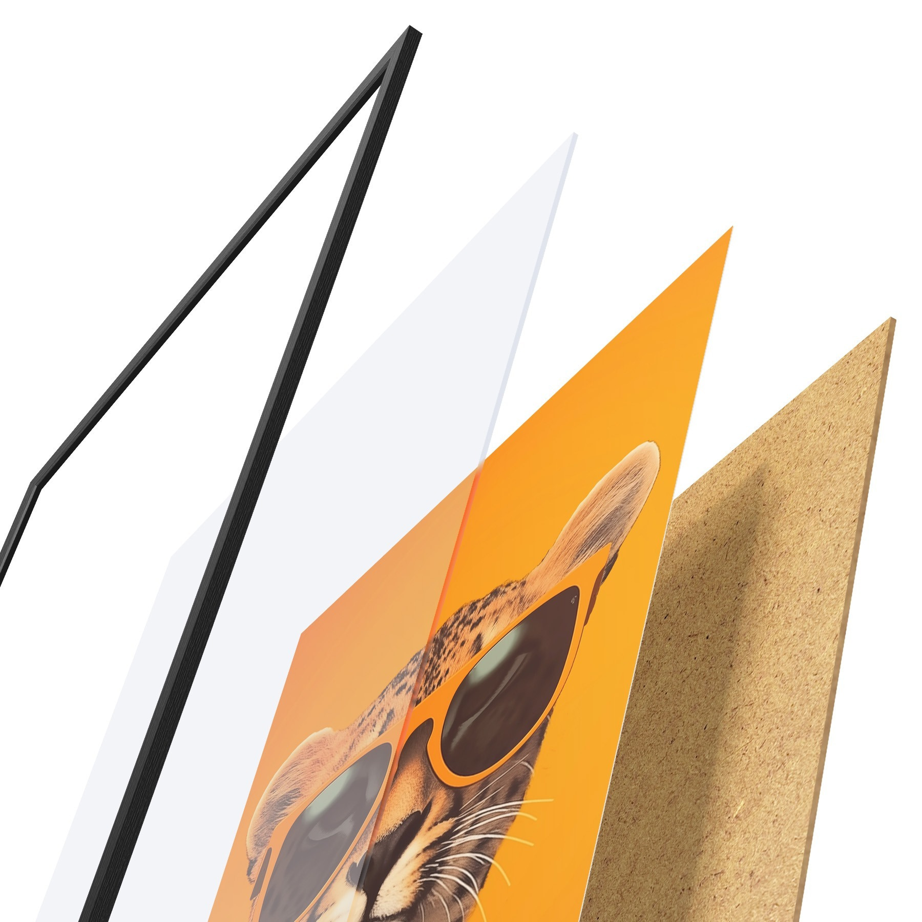 Plakat koosneb raamist, pleksiklaasist, trükitud pildist ja puitlaastplaadist alusplaadist. Tänu tagaküljel olevatele kinnitustele saab plakati kohe seinale riputada.