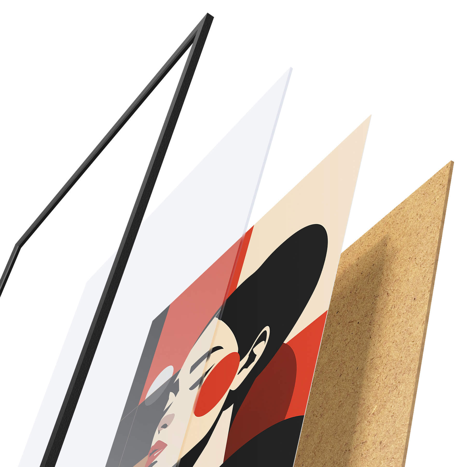 Plakat koosneb raamist, pleksiklaasist, trükitud pildist ja puitlaastplaadist alusplaadist. Tänu tagaküljel olevatele kinnitustele saab plakati kohe seinale riputada.