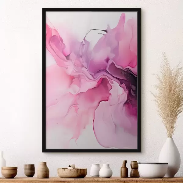 Plakat Abstraktsed roosa, lilla ja musta värvi keerised segunevad kokku voolavas, orgaanilises kompositsioonis, tekitades liikumise tunde f45195