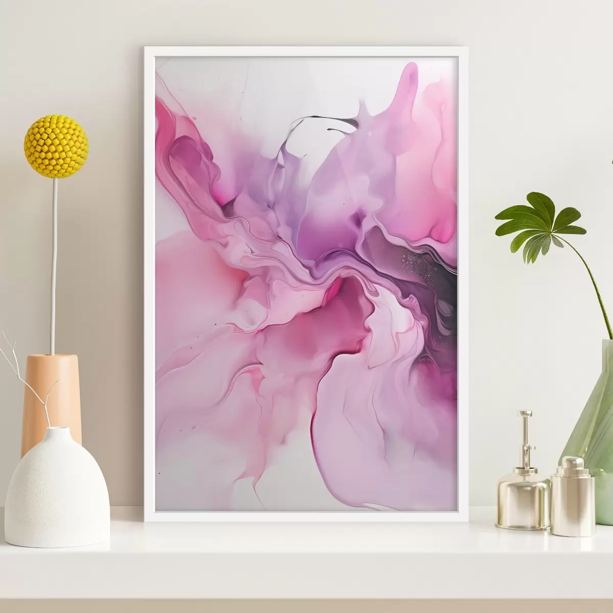 Poster Abstraktsed roosa, lilla ja musta värvi keerised segunevad kokku voolavas, orgaanilises kompositsioonis, tekitades liikumise tunde Nr f45195