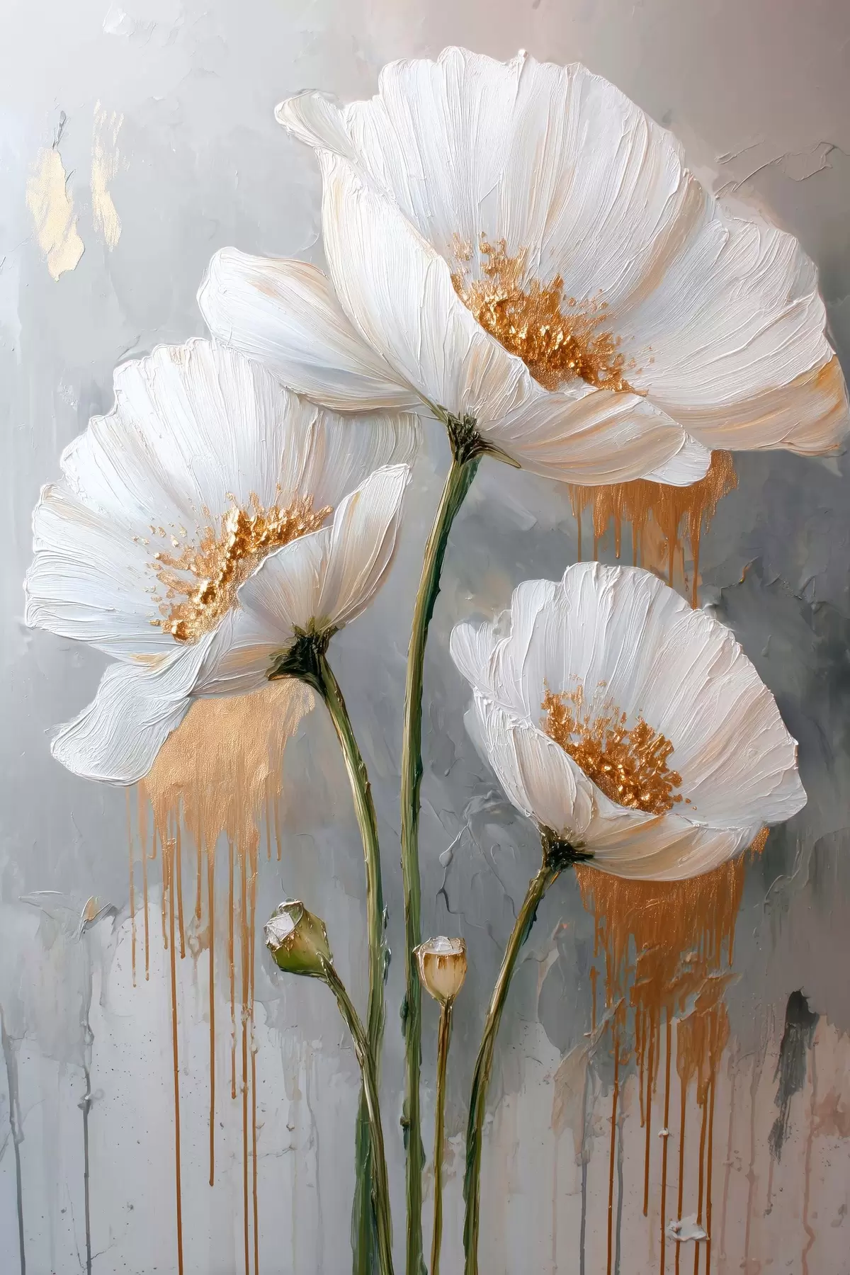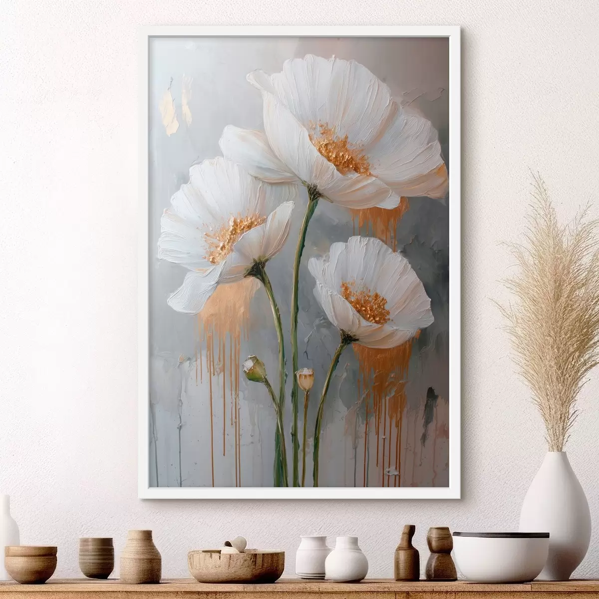 Plakat Valged päevaküünlad: mahuline maalimine sinisel taustal f45240