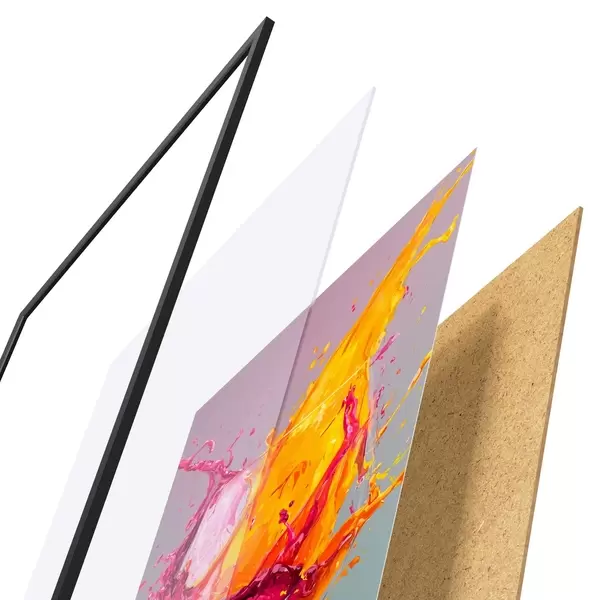 Plakat koosneb raamist, pleksiklaasist, trükitud pildist ja puitlaastplaadist alusplaadist. Tänu tagaküljel olevatele kinnitustele saab plakati kohe seinale riputada.