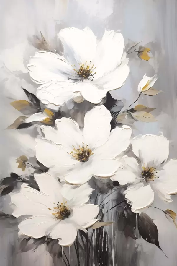Plakat Valged lilled: mahuline maalimine hallile taustale f45252