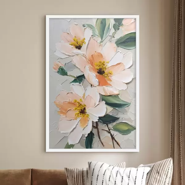 Plakat Valge tipuga kroonlehtede ja kollase keskusega õied f45262