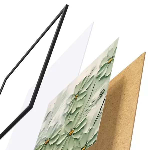 Plakat Rohelised lilled kollase keskusega värvitud paksude pintslitõmmetega heledal taustal f45265