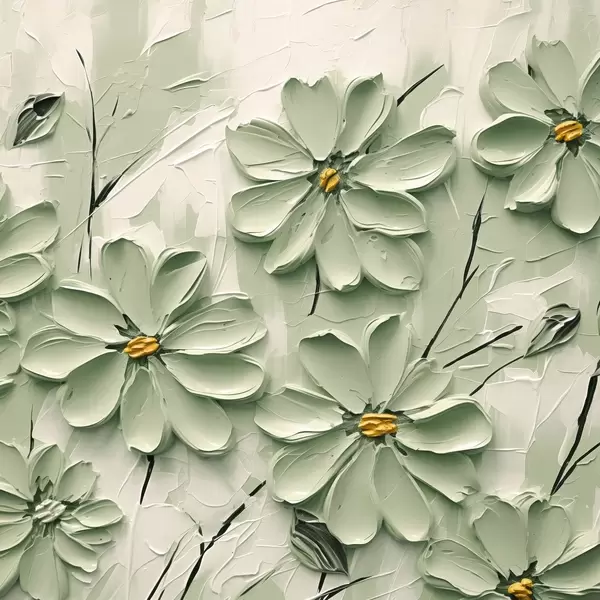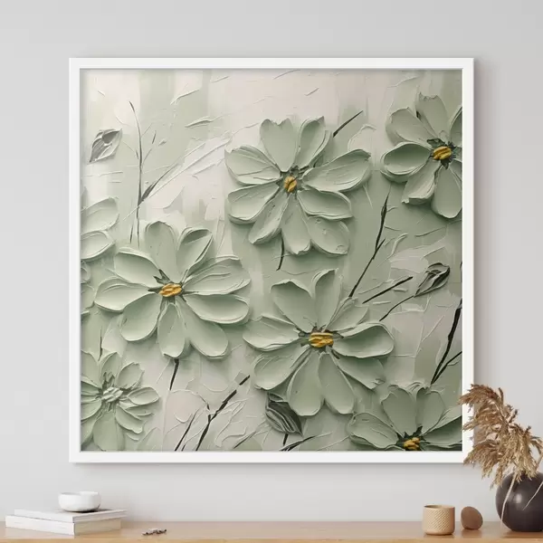 Plakat Rohelised lilled kollase keskusega värvitud paksude pintslitõmmetega heledal taustal f45265
