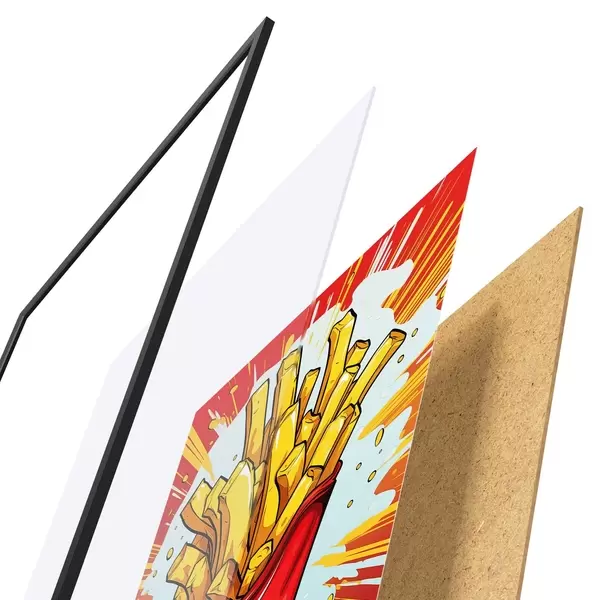 Plakat koosneb raamist, pleksiklaasist, trükitud pildist ja puitlaastplaadist alusplaadist. Tänu tagaküljel olevatele kinnitustele saab plakati kohe seinale riputada.