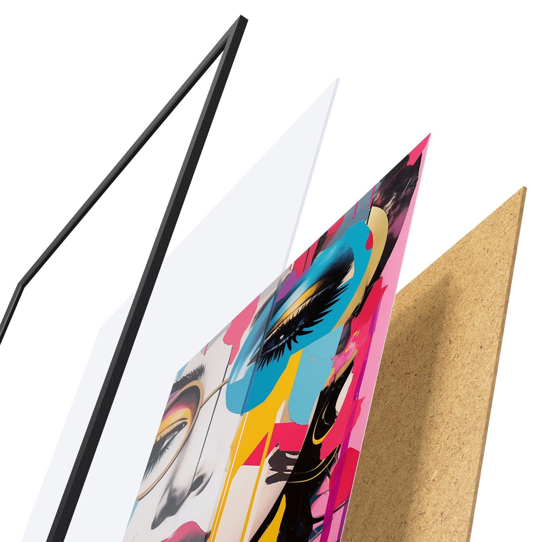 Plakat koosneb raamist, pleksiklaasist, trükitud pildist ja puitlaastplaadist alusplaadist. Tänu tagaküljel olevatele kinnitustele saab plakati kohe seinale riputada.