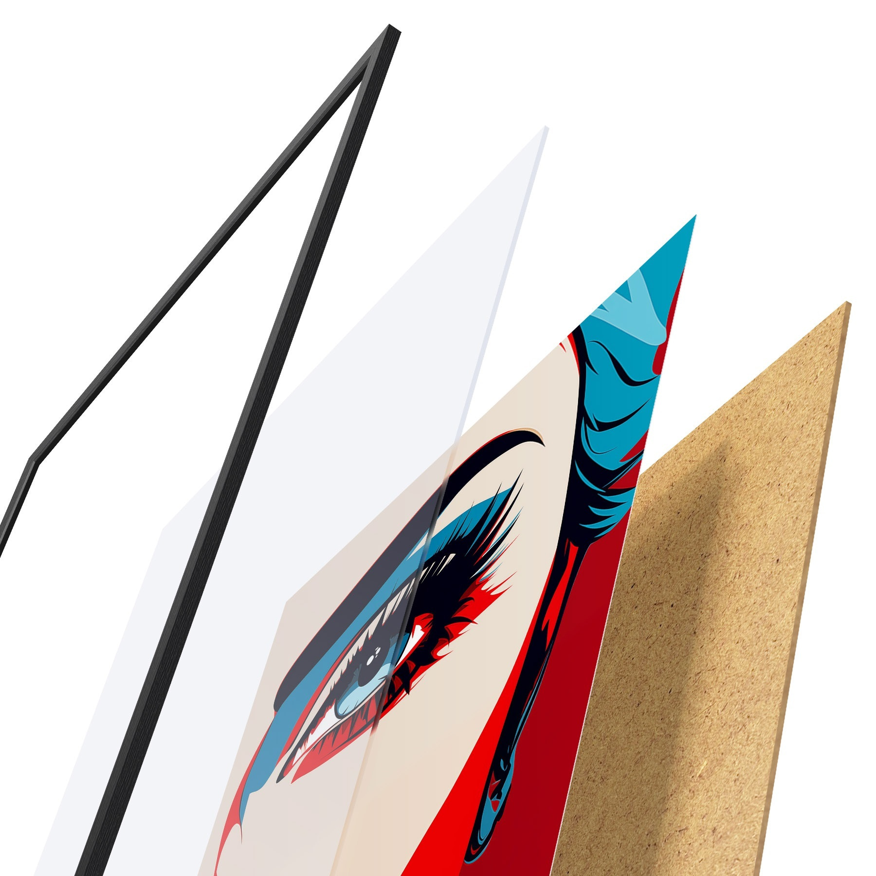 Plakat koosneb raamist, pleksiklaasist, trükitud pildist ja puitlaastplaadist alusplaadist. Tänu tagaküljel olevatele kinnitustele saab plakati kohe seinale riputada.