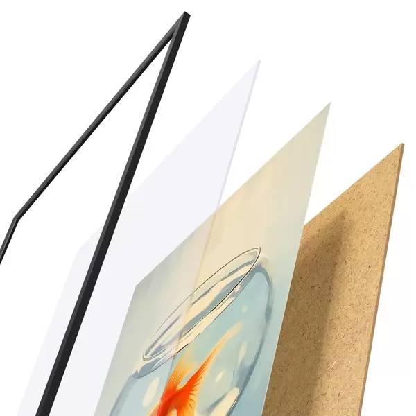 Plakat koosneb raamist, pleksiklaasist, trükitud pildist ja puitlaastplaadist alusplaadist. Tänu tagaküljel olevatele kinnitustele saab plakati kohe seinale riputada.