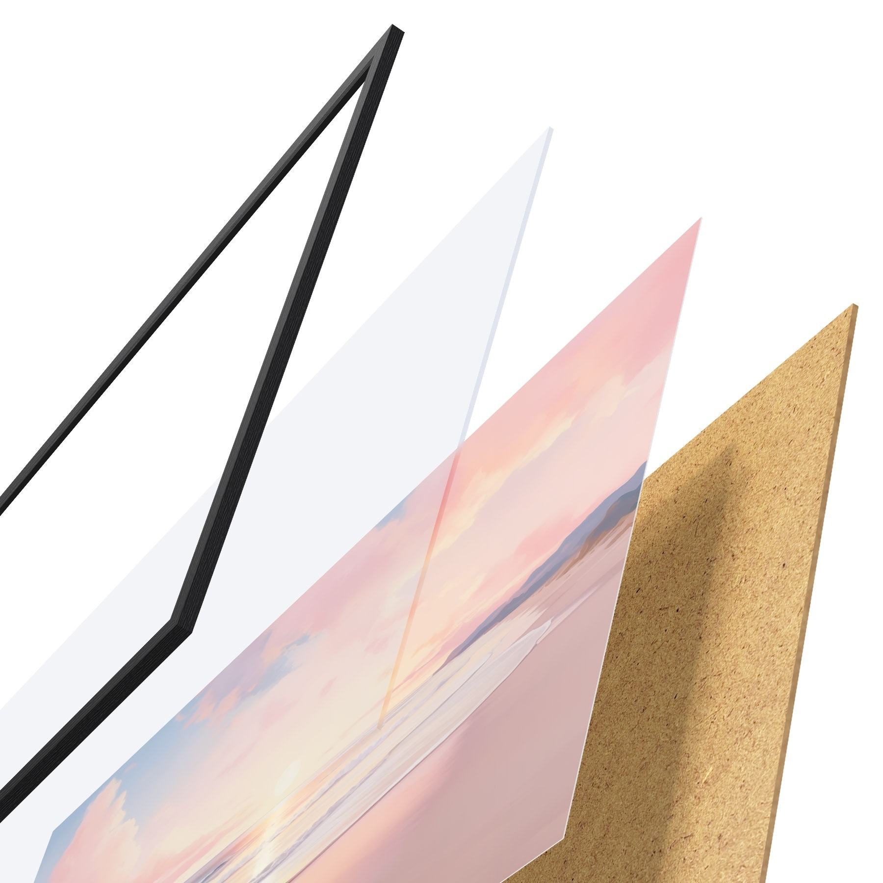 Plakat koosneb raamist, pleksiklaasist, trükitud pildist ja puitlaastplaadist alusplaadist. Tänu tagaküljel olevatele kinnitustele saab plakati kohe seinale riputada.