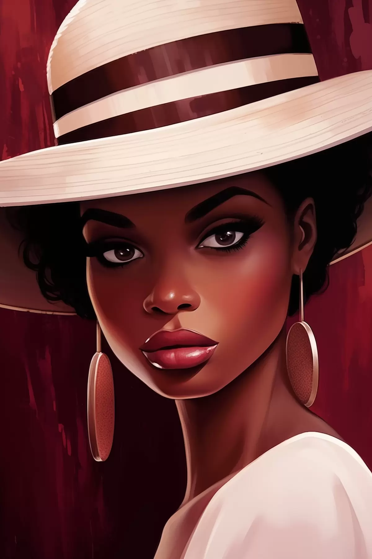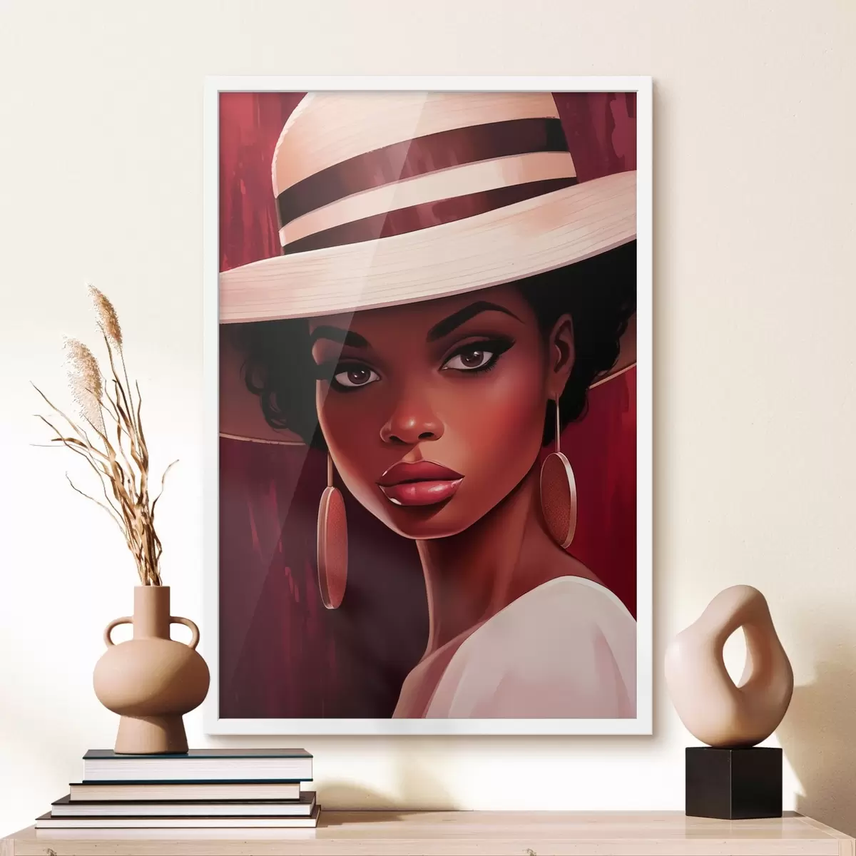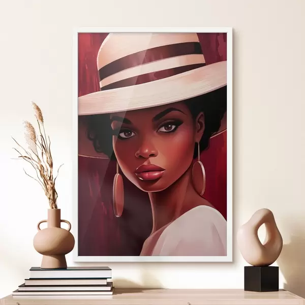 Plakat Naine heledas mütsis ja ümmarguste kõrvarõngastega f45323