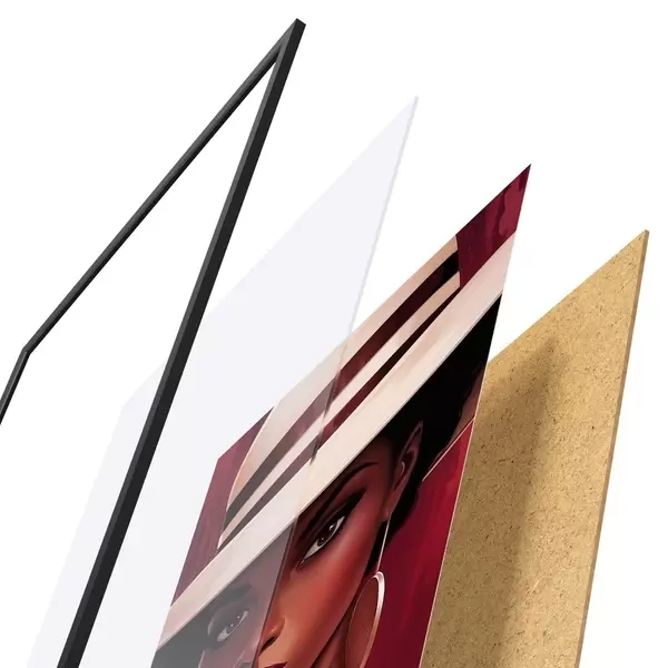 Plakat koosneb raamist, pleksiklaasist, trükitud pildist ja puitlaastplaadist alusplaadist. Tänu tagaküljel olevatele kinnitustele saab plakati kohe seinale riputada.