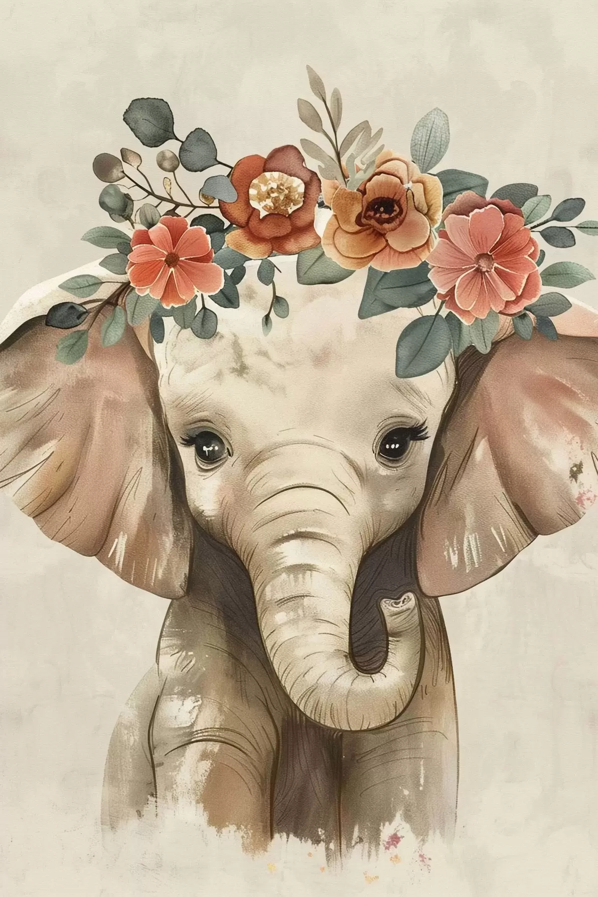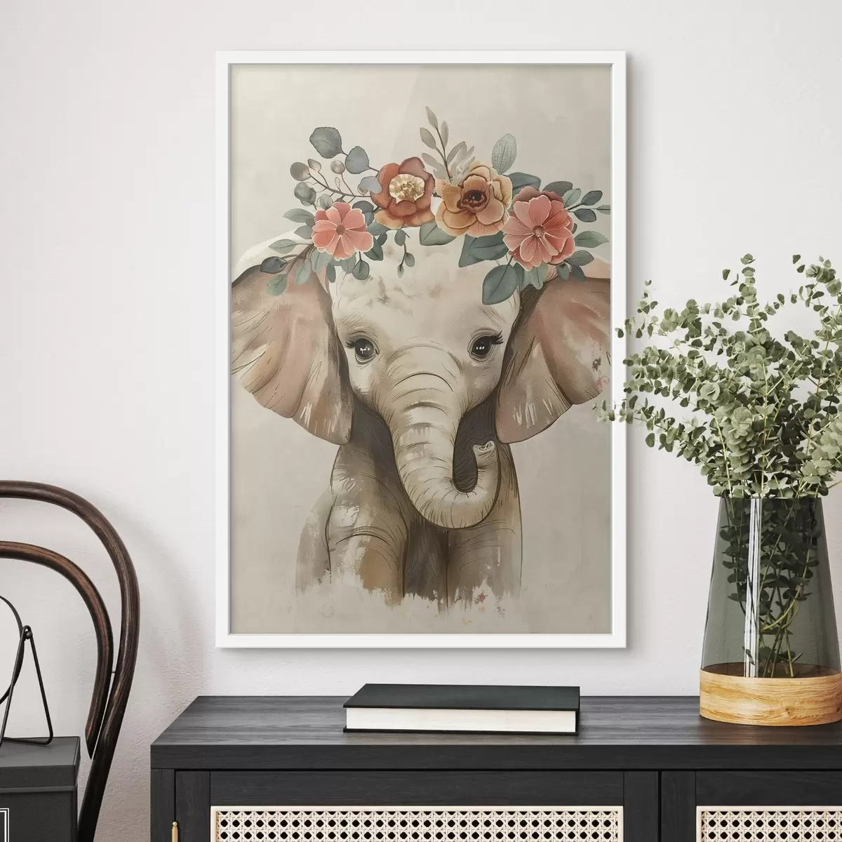 Poster Armas akvarell elevant koos lilledega Nr f45330
