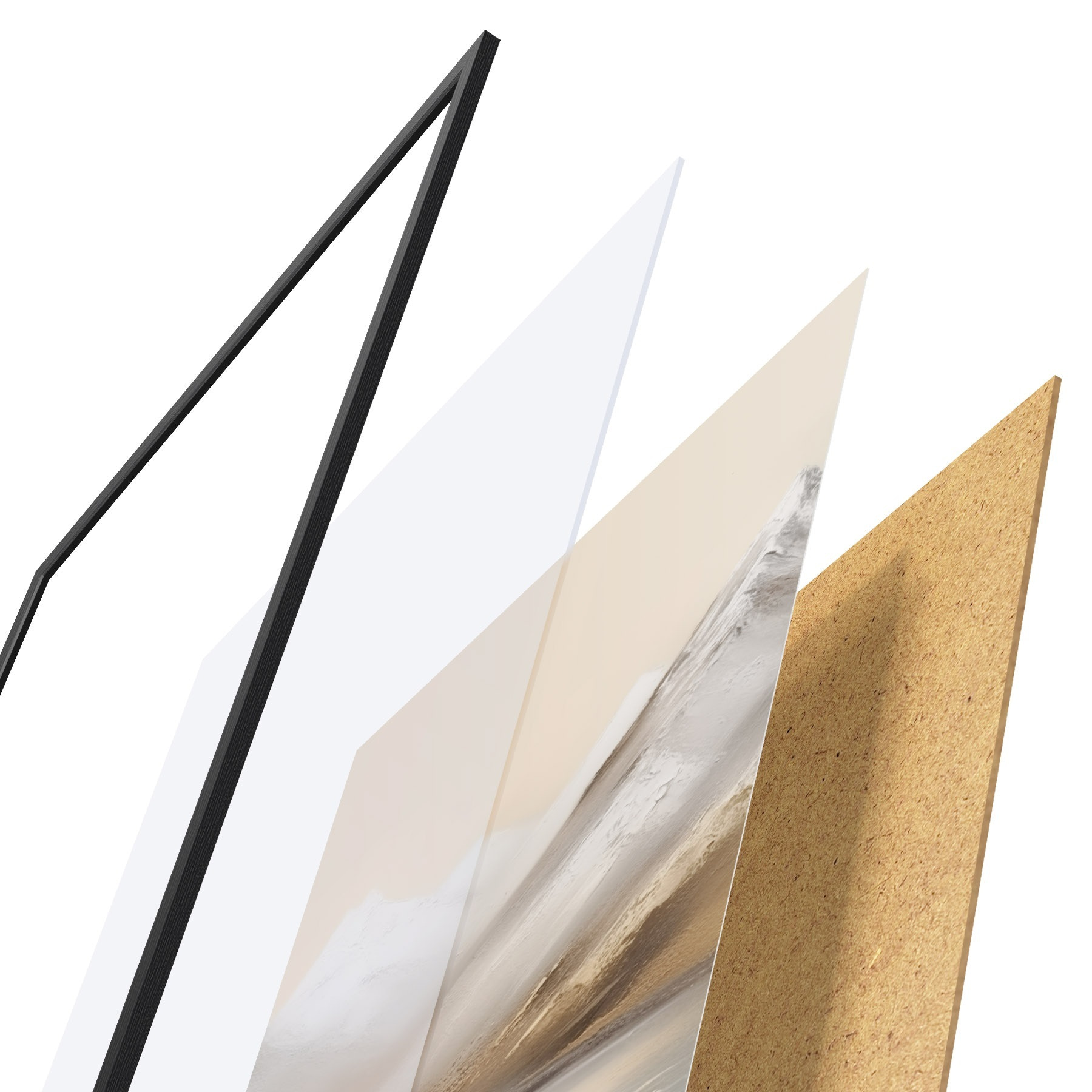 Plakat koosneb raamist, pleksiklaasist, trükitud pildist ja puitlaastplaadist alusplaadist. Tänu tagaküljel olevatele kinnitustele saab plakati kohe seinale riputada.