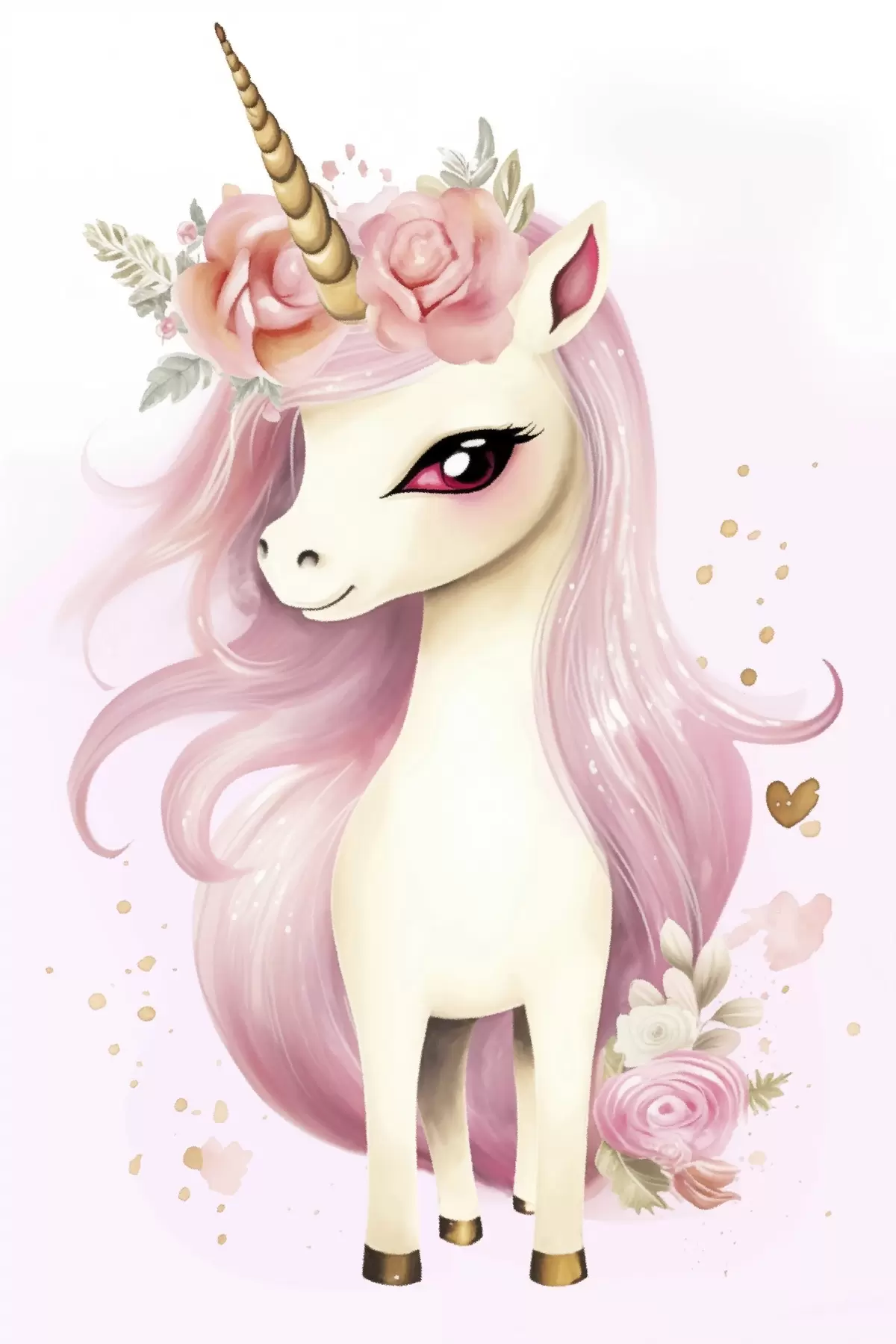 Poster Roosa mehena ja lillepärgiga ükssarvik Nr f45484