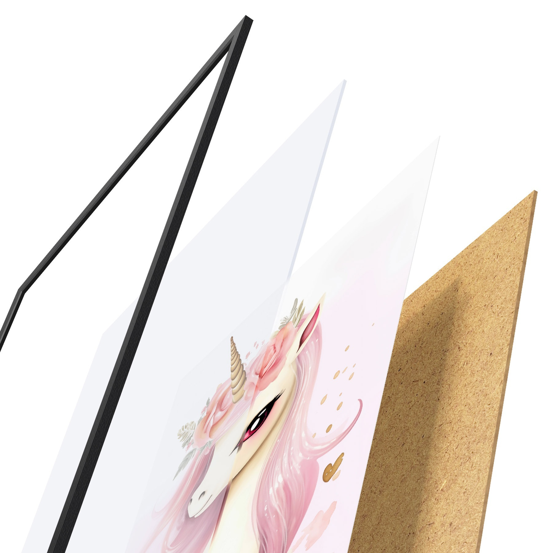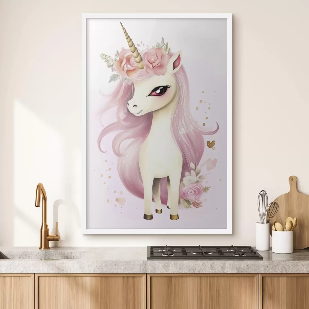 Plakat Roosa mehena ja lillepärgiga ükssarvik f45484