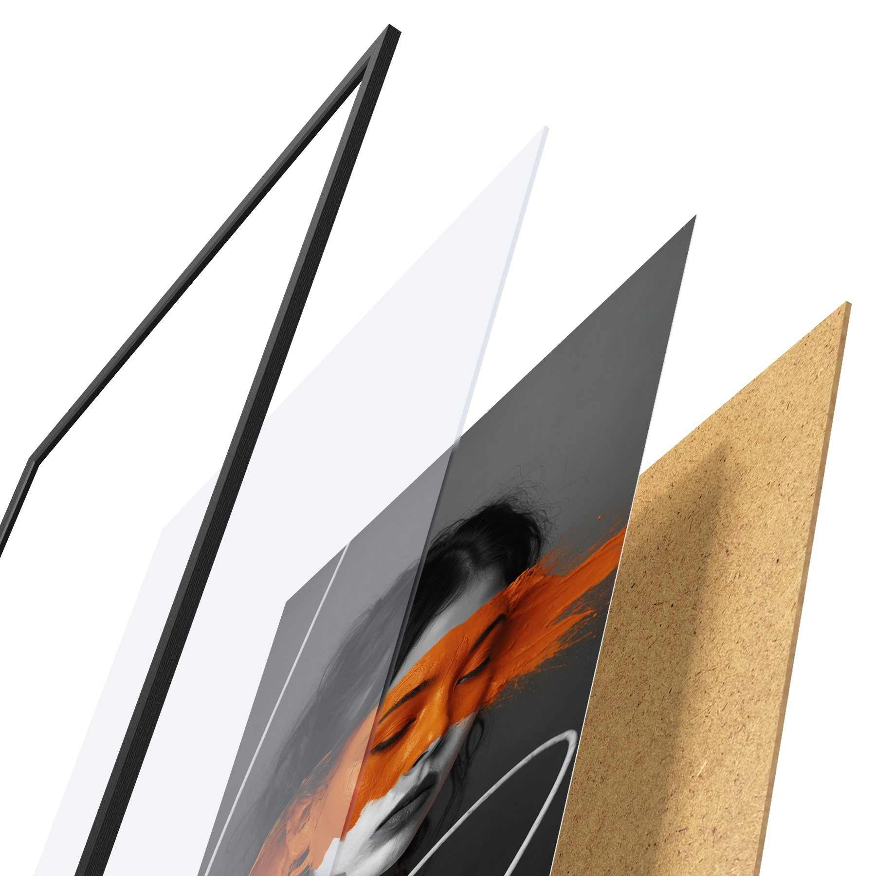 Plakat koosneb raamist, pleksiklaasist, trükitud pildist ja puitlaastplaadist alusplaadist. Tänu tagaküljel olevatele kinnitustele saab plakati kohe seinale riputada.