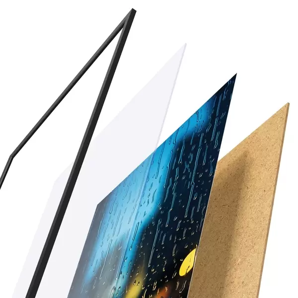 Plakat koosneb raamist, pleksiklaasist, trükitud pildist ja puitlaastplaadist alusplaadist. Tänu tagaküljel olevatele kinnitustele saab plakati kohe seinale riputada.