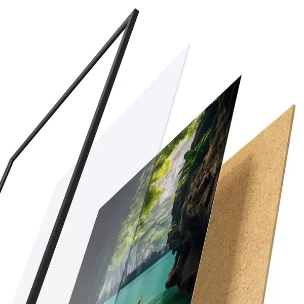 Plakat koosneb raamist, pleksiklaasist, trükitud pildist ja puitlaastplaadist alusplaadist. Tänu tagaküljel olevatele kinnitustele saab plakati kohe seinale riputada.