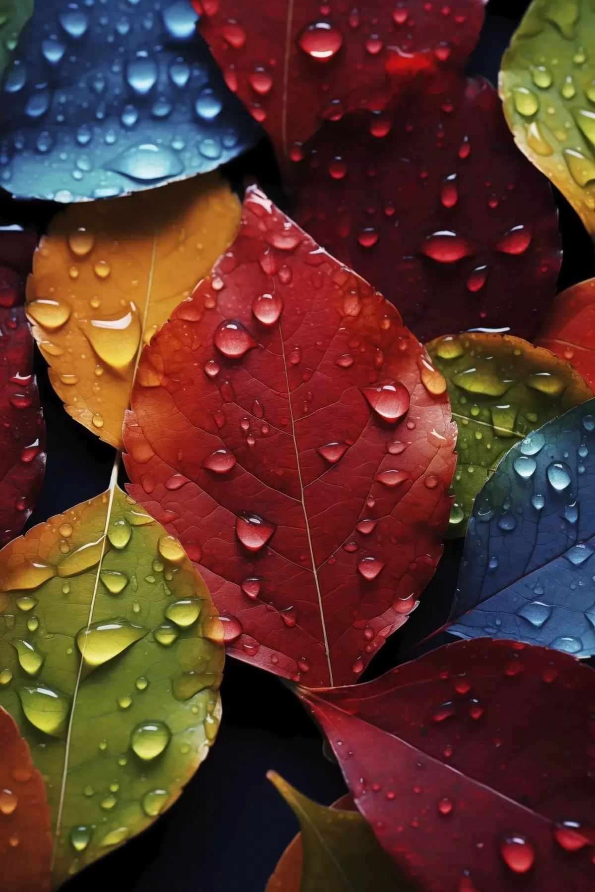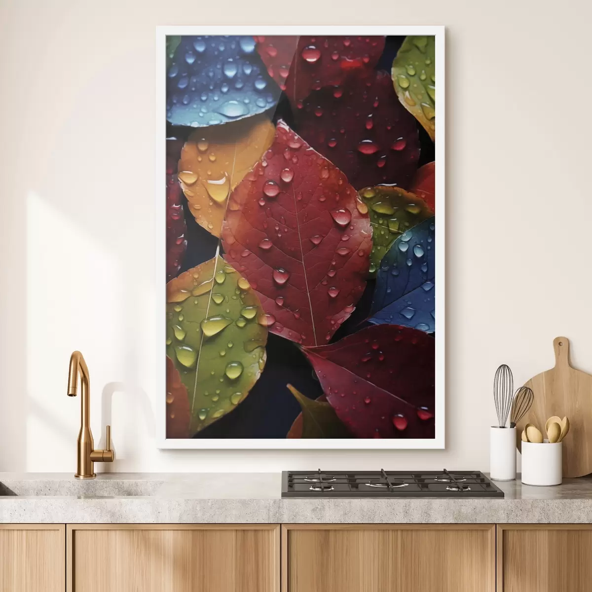 Poster Värvilised lehed koos veetilkadega Nr f45516