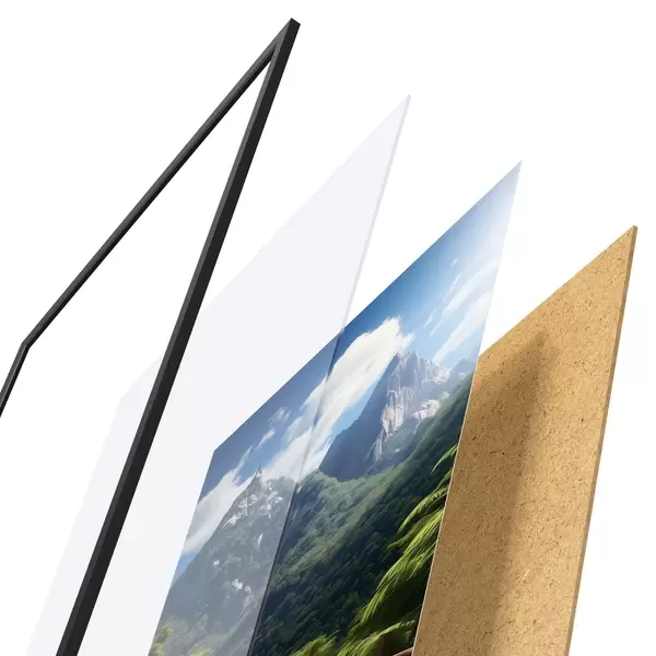 Plakat koosneb raamist, pleksiklaasist, trükitud pildist ja puitlaastplaadist alusplaadist. Tänu tagaküljel olevatele kinnitustele saab plakati kohe seinale riputada.