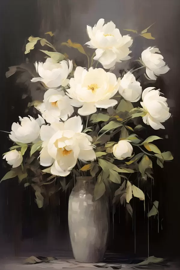 Poster Õrnad pioonid vaasis: lillekompositsioon maali stiilis Nr f45532