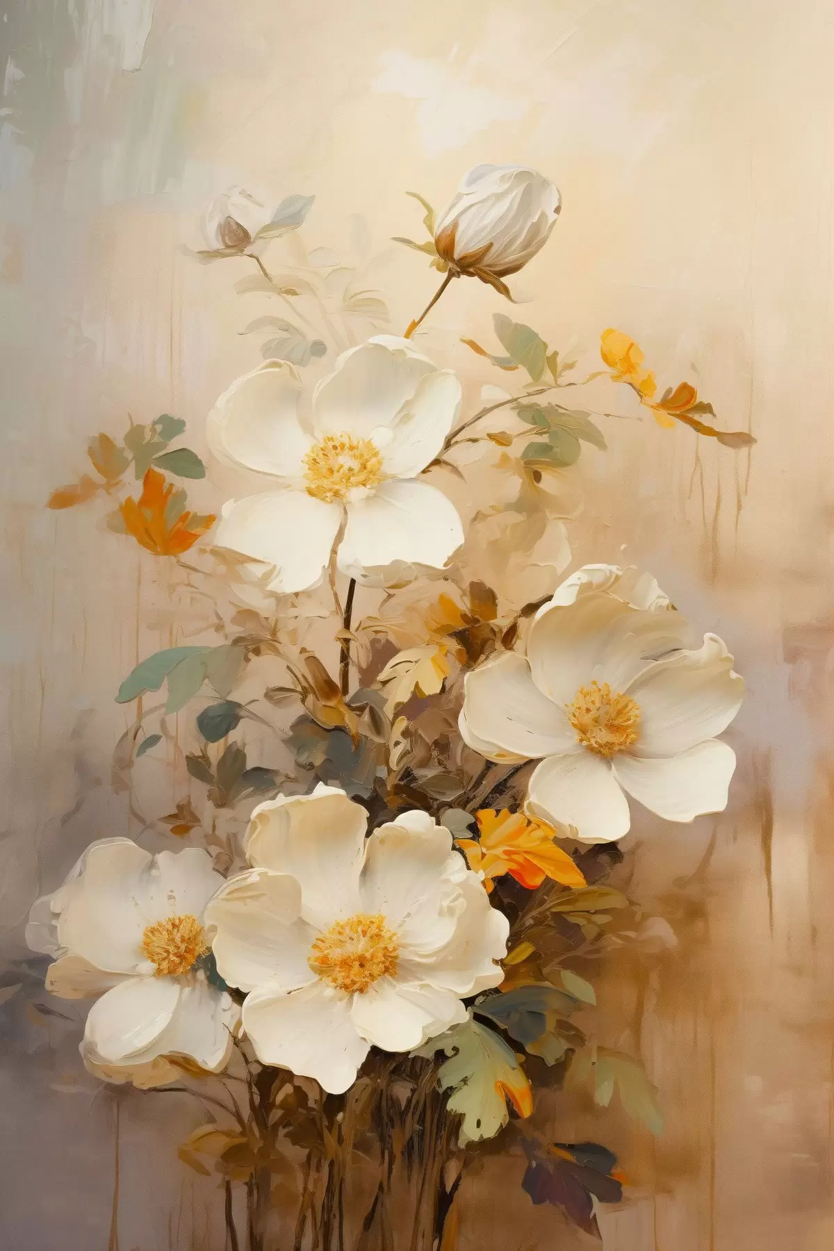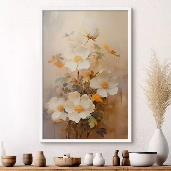 Plakat Valged lilled: maaliline kompositsioon pastelsetes toonides f45533