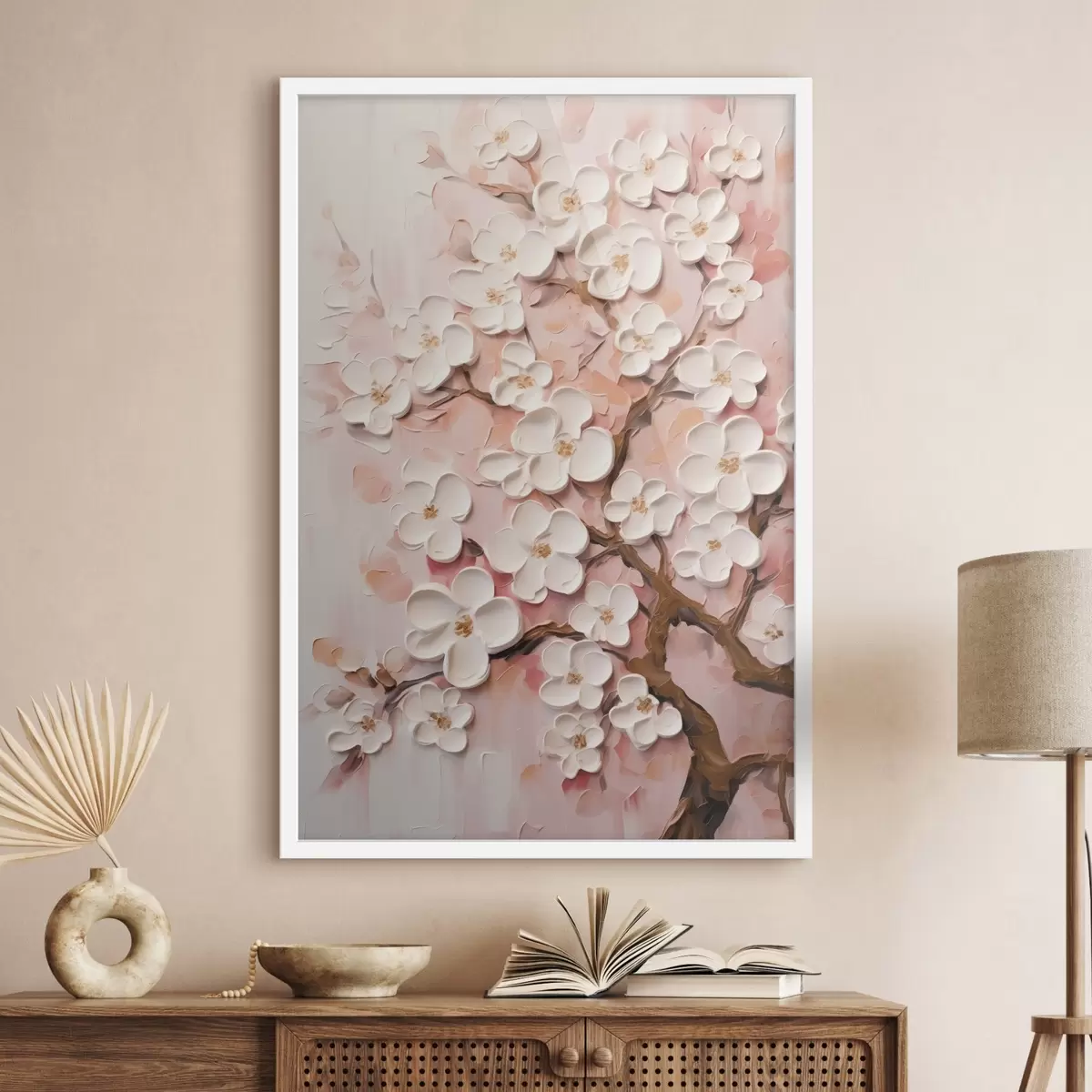 Plakat Õitsev haru: reljeefne kompositsioon heleroosa toonides f45543