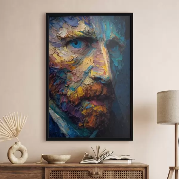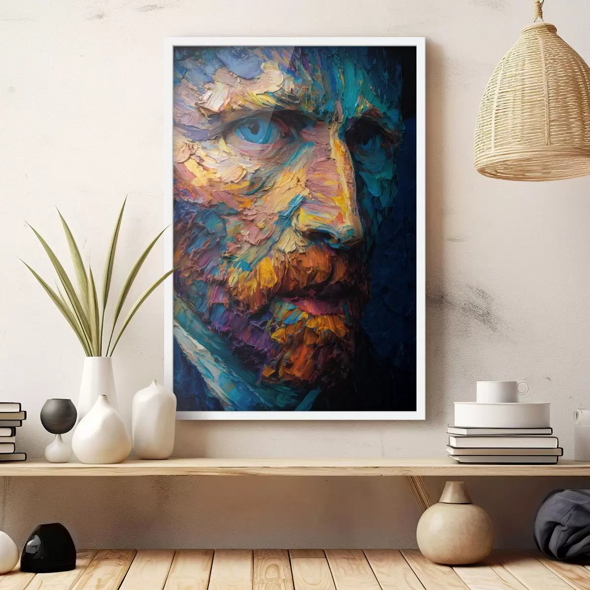 Poster Dekoratiivne Van Goghi portree: reljeefne maal sinistes ja oranžides toonides Nr f45546