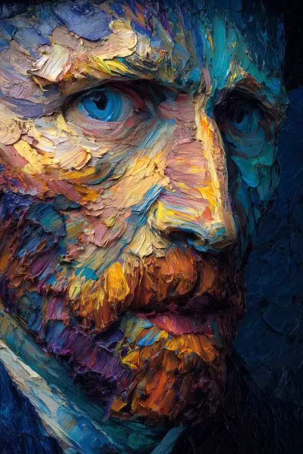 Poster Dekoratiivne Van Goghi portree: reljeefne maal sinistes ja oranžides toonides Nr f45546