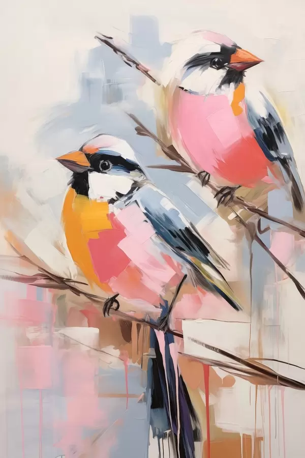 Poster Värvilised linnud istuvad oksal pehmel pastelsel taustal Nr f45578