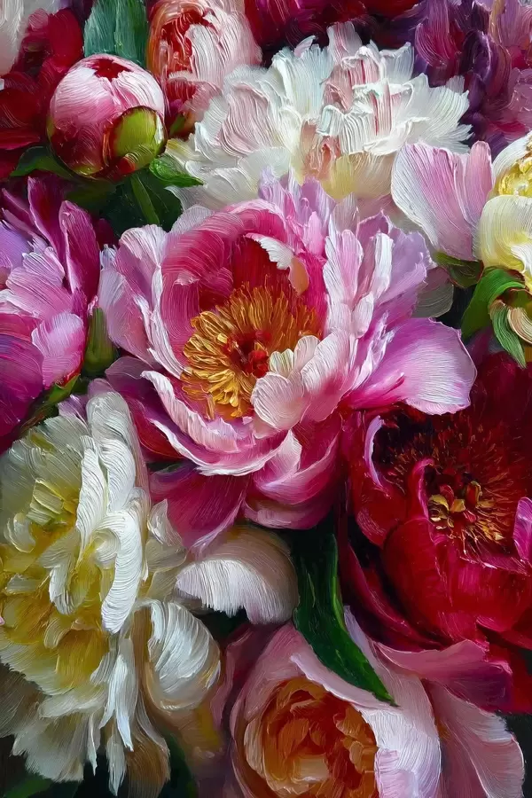 Poster Lopsakad pojengid impasto tehnikas Nr f45595