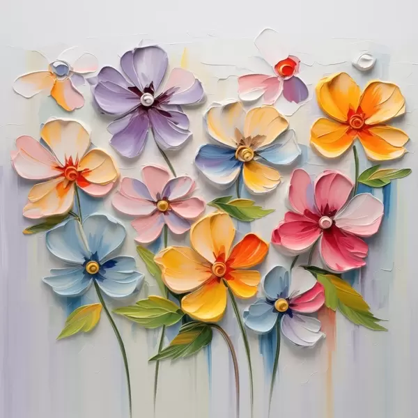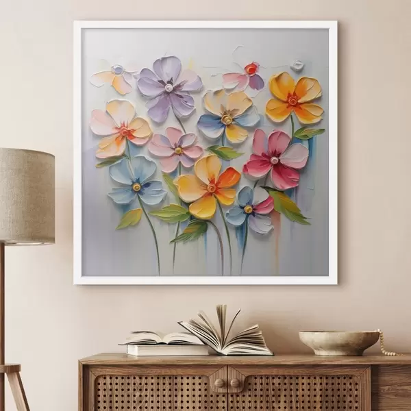 Plakat Lillestatiiv: mitmevärvilised lilled impastotehnikas f45598