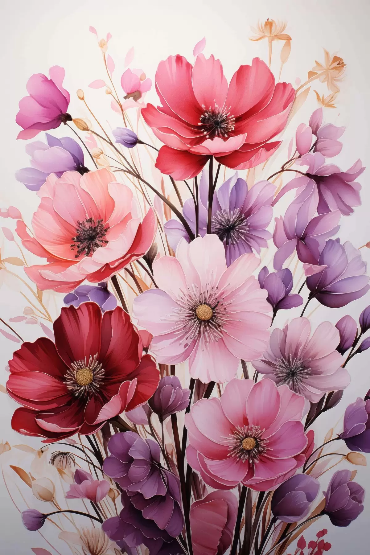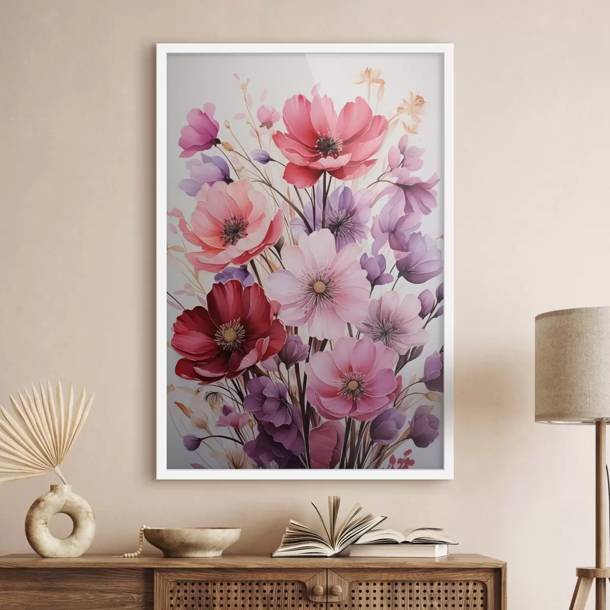 Poster Õrn kimp roosa ja lilla moonide heledal taustal, akvarellstiilis Nr f45601