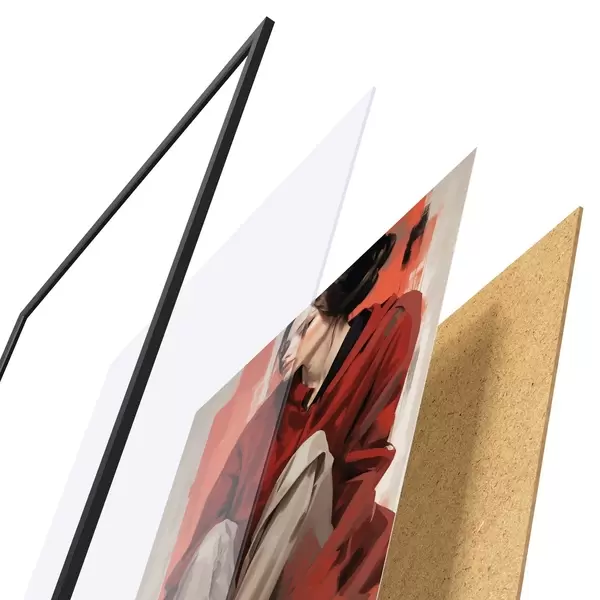 Plakat koosneb raamist, pleksiklaasist, trükitud pildist ja puitlaastplaadist alusplaadist. Tänu tagaküljel olevatele kinnitustele saab plakati kohe seinale riputada.