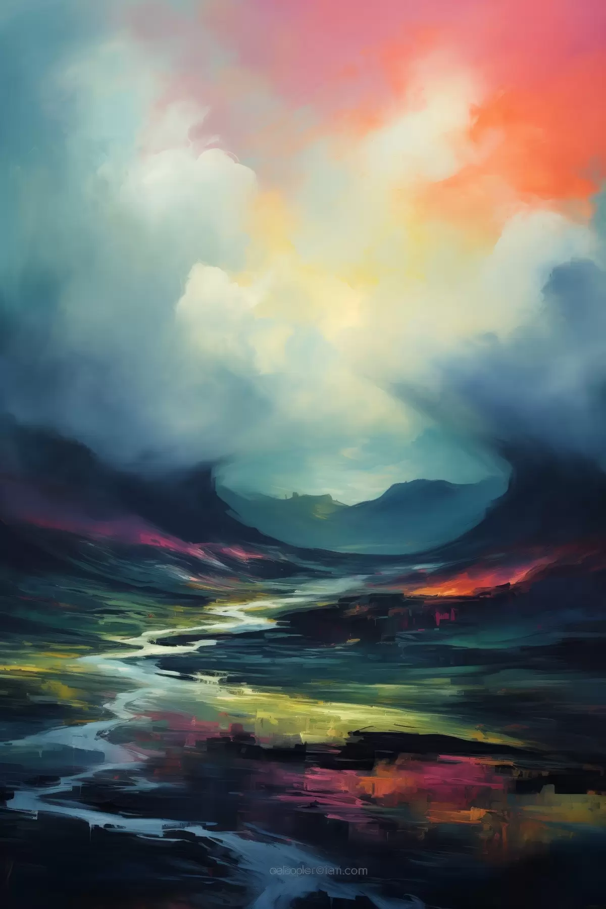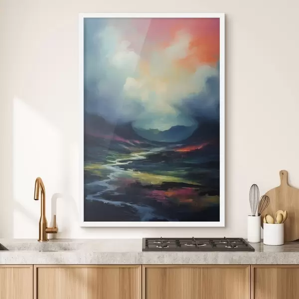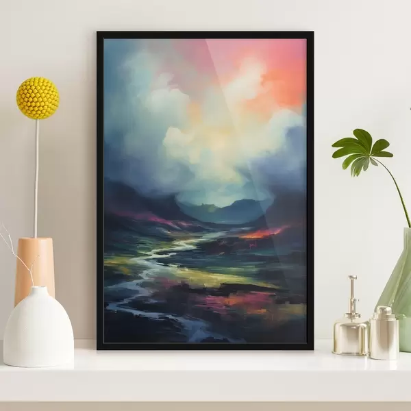 Poster Abstraktne maastik jõe ja mägedega Nr f45627