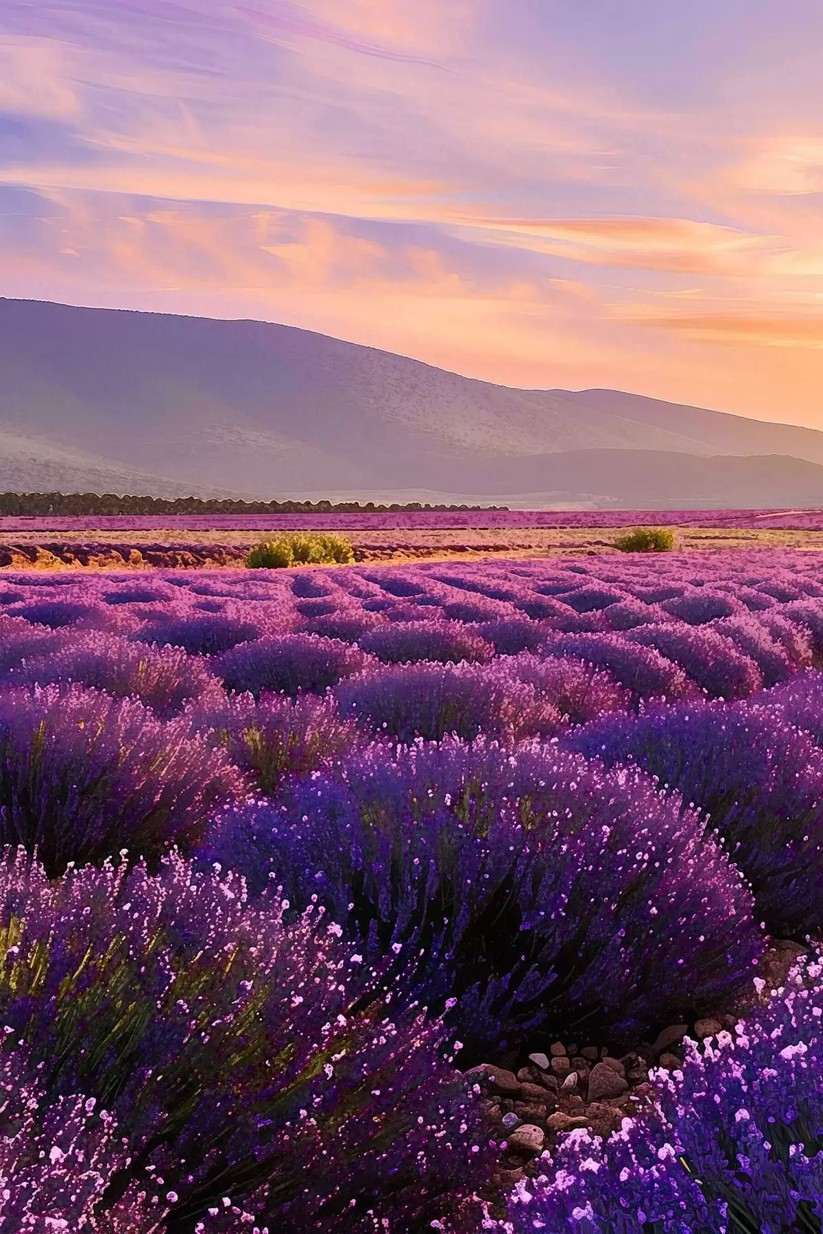 Poster Lavendlipõllud mägede taustal Nr f45662