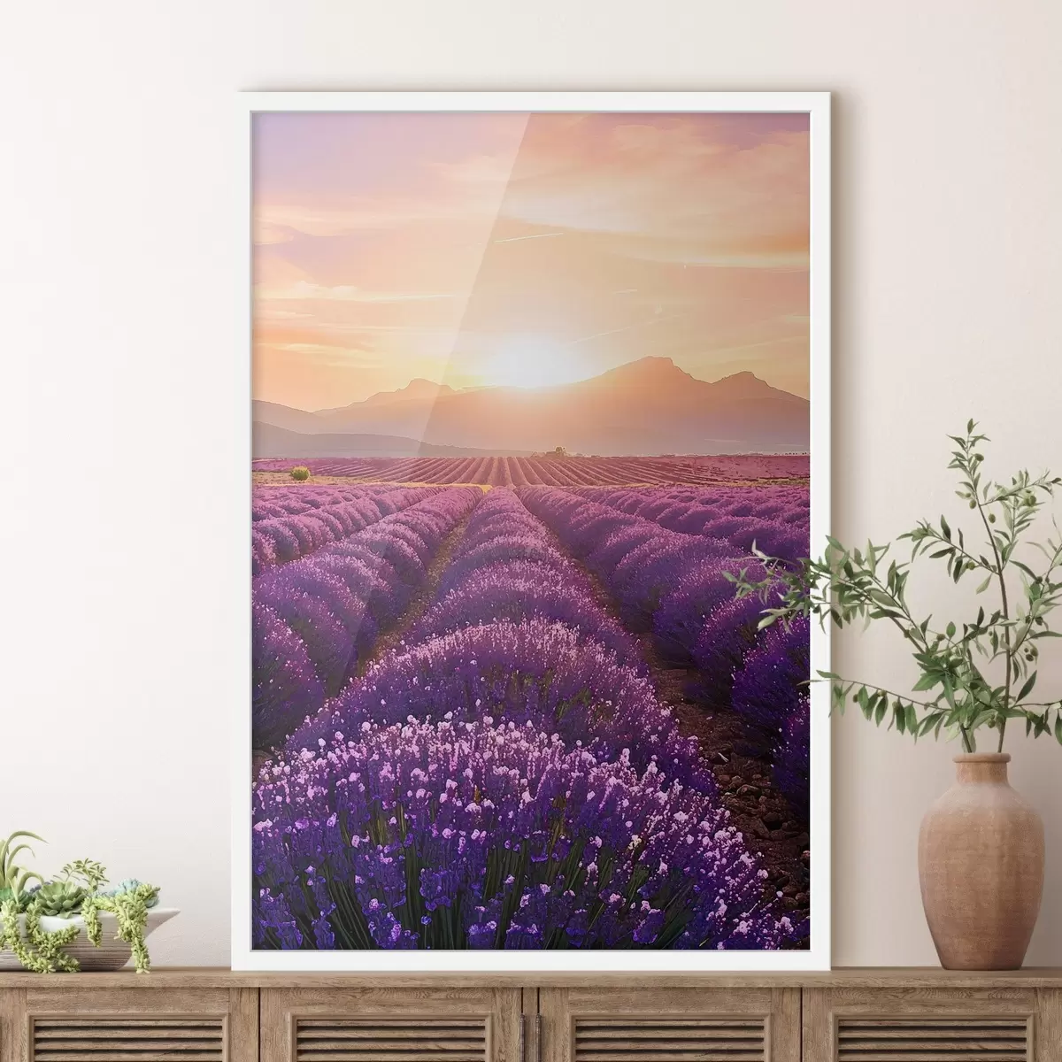 Poster Päikeseloojang lavendlipõllul Nr f45663