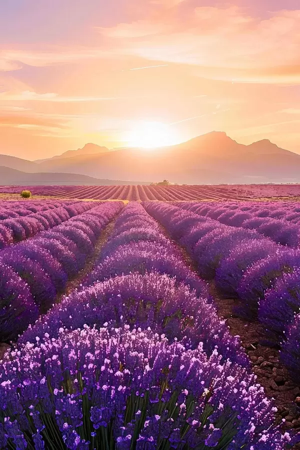 Poster Päikeseloojang lavendlipõllul Nr f45663